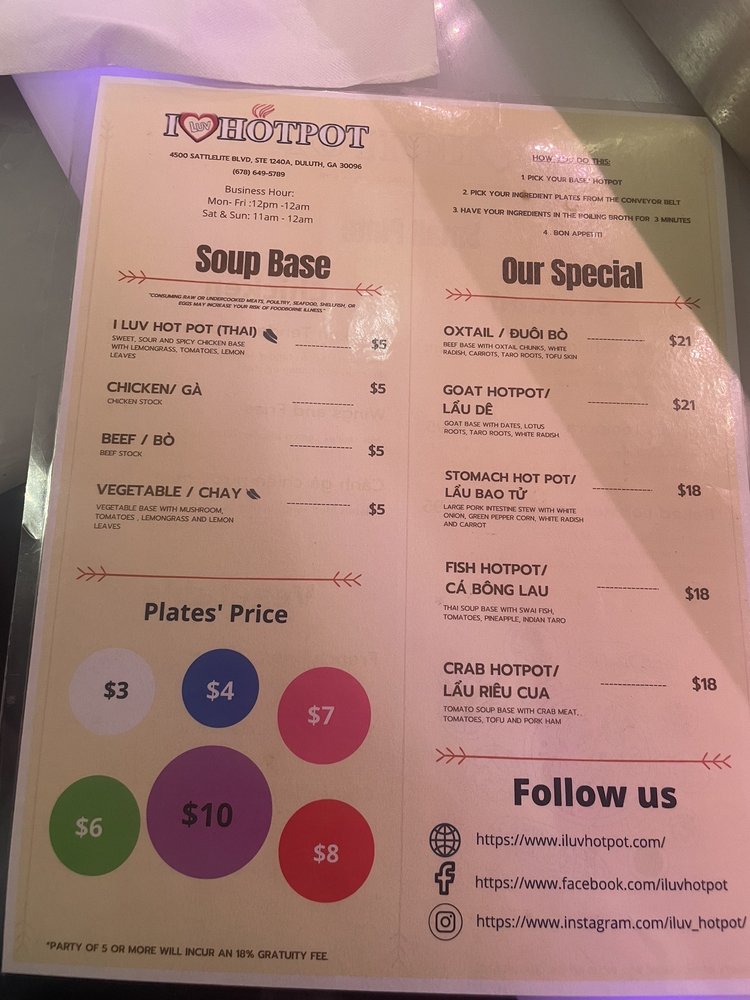 Welcome to I Luv Hot Pot, a vibrant and trendy Vietnamese dining destination located at 4500 Satellite Blvd #1240, Duluth, GA 30096. This restaurant is not just a meal; it’s an experience that invites you to immerse yourself in the delicious world of hot pot cuisine. Perfect for families, friends, and anyone looking to indulge in a joyful meal, I Luv Hot Pot offers a variety of options that cater to all dietary preferences, including pescatarian, vegan, and vegetarian.
